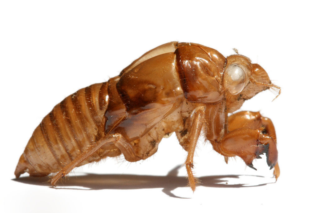 蝉蛹的前腿呈勾状,这样,当成虫从空壳中出来时,它就可以牢牢地挂在树上。
